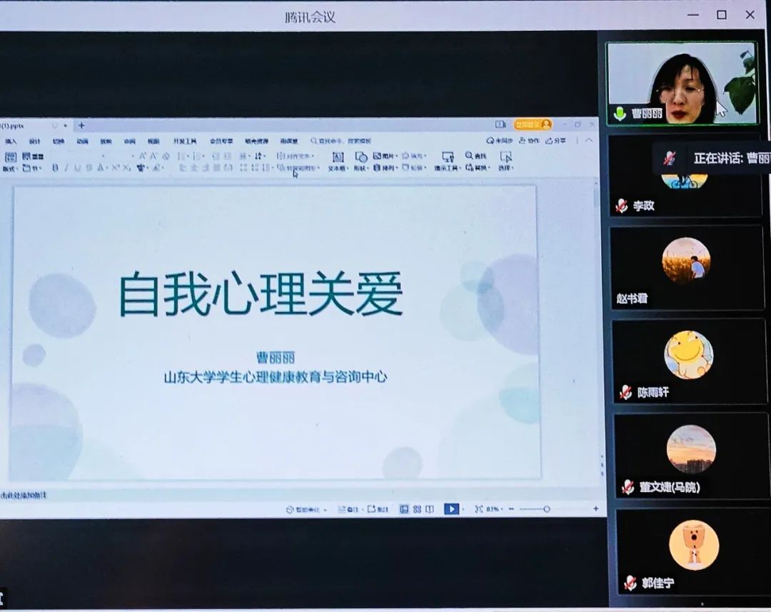 3月21日上午,英国上市公司365开展“自我心理关爱”心理健康讲座。讲座由员工心理健康教育与咨询中心曹丽丽老师主讲,学院部分本科生和研究生参加,讲座通过腾讯会议顺利开展。