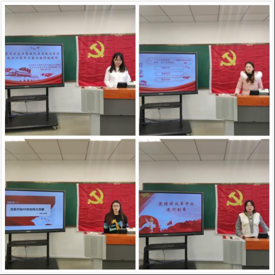 本次党日活动主要围绕学习近平总书记在庆祝改革开放40周年大会上的讲话,由4位党员代表依次展开专题汇报。