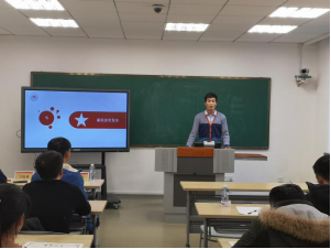 会议伊始,现任会长韩文彬对学习会近一年来的工作情况进行了总结汇报,他用一串串数据、一项项荣誉展示了学习会成立429天以来取得的成绩,他强调学习会的成长离不开学院领导、老师们的鼎力支持与悉心指导,离不开学习会的成员们在相聚相知中的同心奋进,他真诚诉说了自己在学习会中的收获并勉励同仁谨记责任、与时俱进、勇担使命、再创新辉。随后,学习会第一届成员的精彩活动视频展播带领大家回顾了学习会成立以来的工作亮点:从青年宣讲、社会实践到日常活动,成员们用自己的实际行动为理论学习代言,为理论传播发声。伴随着总结成就的欣喜,马晓琳书记和魏廷义老师为学习会第一届骨干成员颁发荣誉证书并合影留念。接着,现任会长韩文彬宣读了新一届学习会骨干成员名单,同时对他们表示祝贺。授旗仪式结束后,新任会长蒋在峰代表新一届骨干成员发言,并郑重承诺在今后的学习会工作中,将继续走在理论学习的前列,扛起理论传播的大旗,做好特色活动的延续与创新,并期望新一届骨干成员继续保持锐意进取之姿,埋头苦干之态,力争取得新荣光和新礼赞。