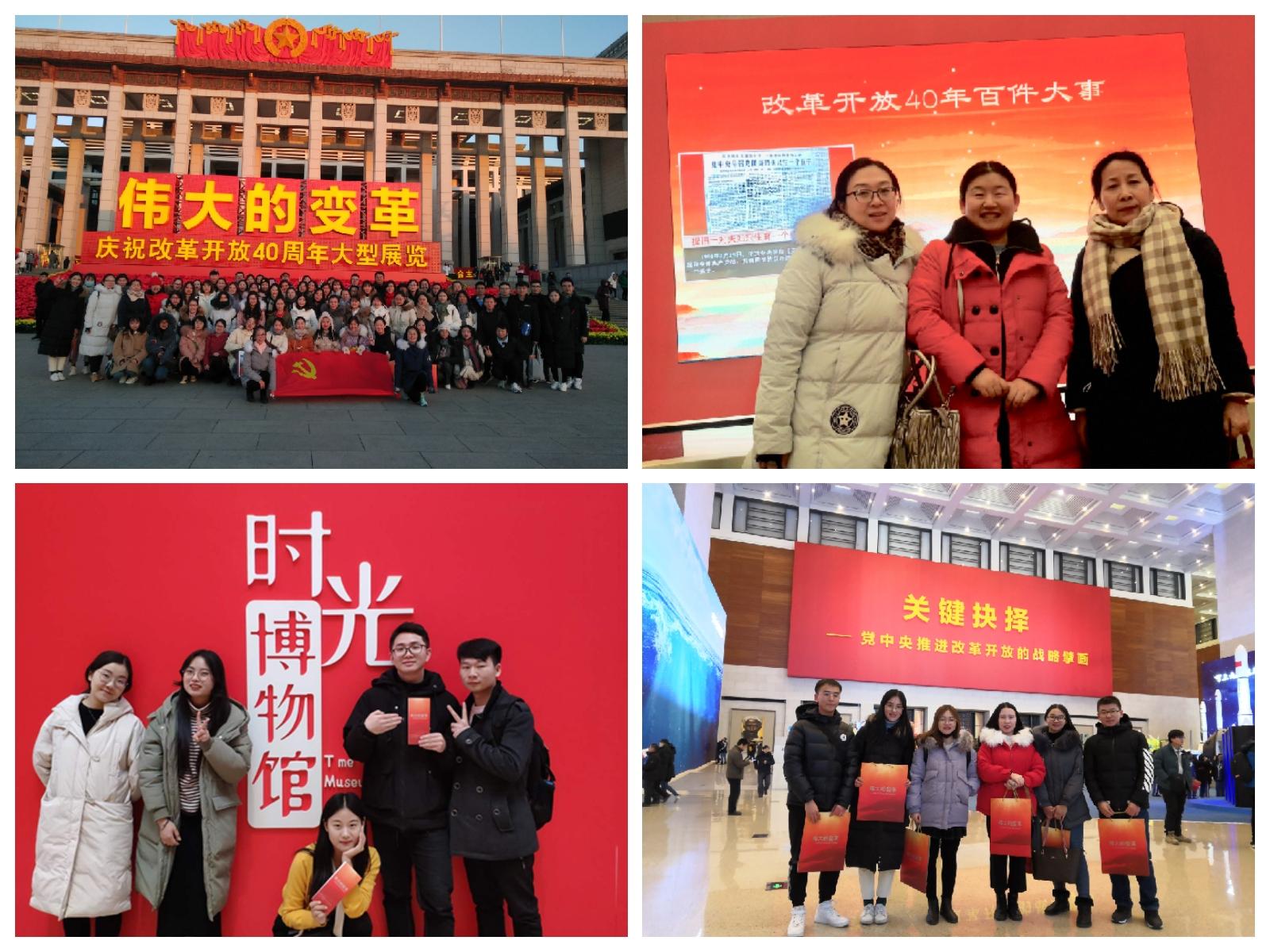 2018年,中国迎来了改革开放40周年。40年在中国共产党的坚强领导下,中国人民众志成城、砥砺奋进,创造了人类历史上的东方奇迹。为贯彻落实党的十九大精神和中共365英国上市集团第十四次代表大会精神,发挥全国重点英国上市公司365在教育、宣传马克思主义理论上的示范引领作用和基层党组织的战斗堡垒作用,进一步坚定青年学子对中国特色社会主义道路、理论、制度、文化的自信,2018年12月27日,英国上市公司365齐子萍、孟鹏、史婷婷三位老师与2017级研究生党支部、2018级硕士研究生党支部共82名成员一同前往中国国家博物馆参观了“伟大的变革——庆祝改革开放40周年大型展览”,展开了以“回首四十载,共创新时代”为主题的基层党建活动。