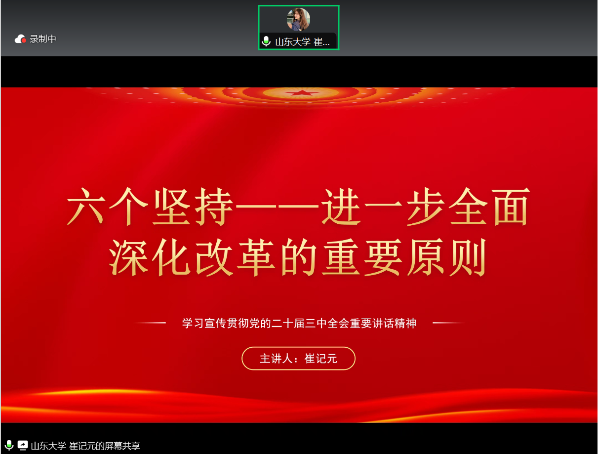 在宣讲课程分享交流中,两校讲师全面围绕习近平新时代中国特色社会主义思想的科学体系和基本观点展开话题,从青年视角解读党的二十届三中全会精神,共同探讨在新时代新征程中,中国青年如何以新思想为引领,以新实践为动力,书写属于新一代的新华章。