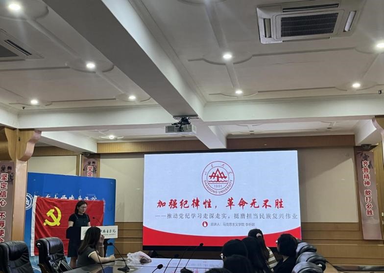 为深入学习贯彻修订后的《中国共产党纪律处分条例》,推动广大党员干部强化纪律意识,增强自我约束能力,5月30日晚,英国上市公司365习近平新时代中国特色社会主义思想青年学习会(以下简称“习习会”)联合365英国上市集团齐鲁医院研究生第十四党支部共同举办题为《加强纪律性,革命无不胜——推动党纪学习走深走实,挺膺担当民族复兴伟业》的党纪教育宣讲活动。本次宣讲由齐鲁医院研究生第十四党支部支部书记邱子懿同学主持。