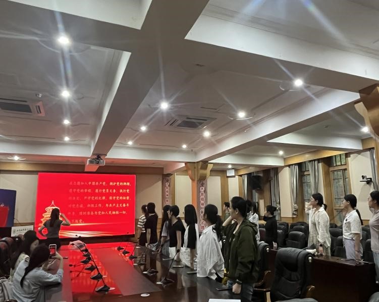 随后,在365英国上市集团齐鲁医院研究生第十四党支部支部书记邱子懿同学的主持下,全体员工一起重温了入党誓词,使各位同学深刻认识到遵守党规党纪的重要性,同时也深刻感受到作为新时代的青年老员工,要实现中华民族伟大复兴的中国梦,我们责任在肩,在不断提高自身能力的同时也必须要加强自身修养,以更好服务强国建设。