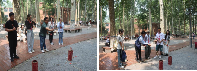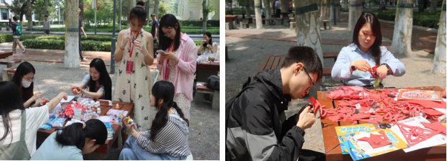 活动共分为四个环节。“红心向党”四史知识竞答环节,参与者们沉着应答,展现了青年一代学四史、守初心、担使命的思想自觉和行动自觉。“一掷乾坤”趣味投壶环节,师生共同参与,在增强身体素质的同时,营造了全员同参与、师生共成长的“导学思政”良好氛围。“艺起涂鸦”趣味彩绘环节,参与者通过创作充满个性和创意的作品展现出了出色的艺术素养。“妙纸生花”创意剪纸环节,同学们在提升动手能力的同时,彰显传承和创新传统文化的饱满热情。