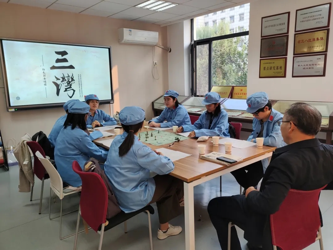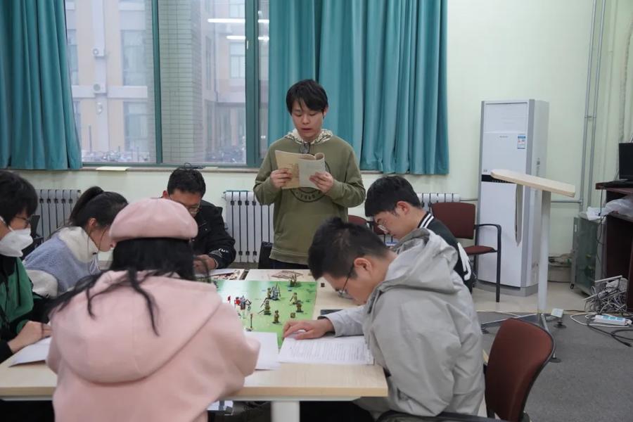 为了让剧本作品更加贴近历史事实,红途社团主创们联合学院资深教授团队开展理论溯源,搜集红色历史理论背景,使红色剧本演绎中塑造的每一个人物均具有时代的深刻印记,展现群体典型性。主创成员贺佳宁感慨:“通过查阅材料,动荡年代农民的生活境况展现眼前。基于这样的历史真实,我们精心塑造了田诚这一角色。他挺身而出,组织农会,逐步成长为一名党的战士。这一人物不仅展现了农民阶级作为新生政治力量的巨大潜力和无限希望,而且更好地诠释了革命实践的深刻伟力。”以小人物的微观叙事,进一步充实宏大叙事的细节,这样的铺陈,立体而丰满,真正贴近了史实。在创作过程中,田诚的成长与抗争让贺佳宁多次动容,记忆深刻。