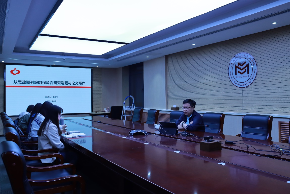 为激发同学们研究热情和研究兴趣,帮助同学们解决在日常学术研究及写作中遇到的问题,4月17日晚,公司党委副书记王海宁作为青马学术沙龙第一期主讲嘉宾,为同学们带来题为“从思政编辑的视角看研究选题看研究选题和论文写作”的交流分享。