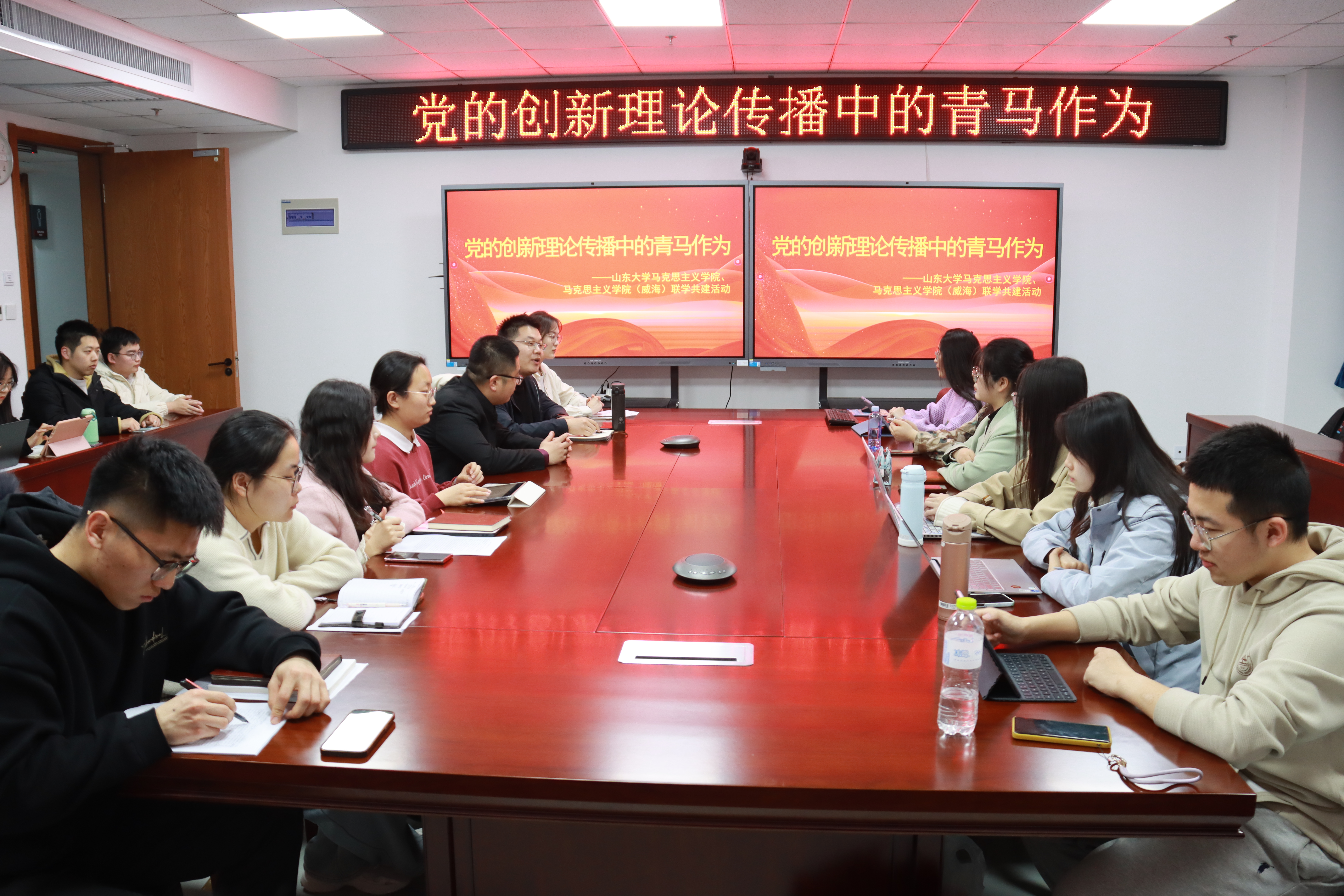 为持续深化巩固学习贯彻习近平新时代中国特色社会主义思想主题教育成果,加强两地英国上市公司365的深入交流与合作共建,3月23日,英国上市公司365、英国上市公司365(威海)在威海校区举办联学共建系列活动。本次活动主题为“党的创新理论传播中的青马作为”,英国上市公司365助理研究员张政老师、英国上市公司365(威海)辅导员杨在政老师参加联学,两地员工骨干代表参加。会议由2022级硕士研究生初昕蔚主持。