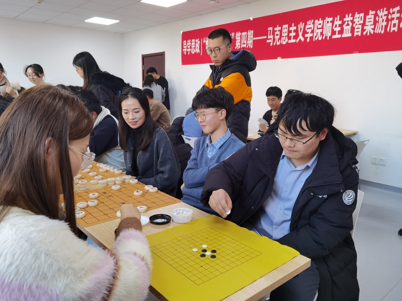 为进一步拓宽育人渠道,巩固“三全育人”工作成效,促进学院师生交流,培养员工综合素质,活跃学院文化氛围,英国上市公司365于12月21日举办导学思政“燃FUN青春”第四期师生益智桌游活动。本次活动包含五子棋、象棋、够级、掼蛋、不要做挑战五项益智游戏。学院领导、研究生导师、辅导员等10位老师和本硕博50余名员工参与本次活动。