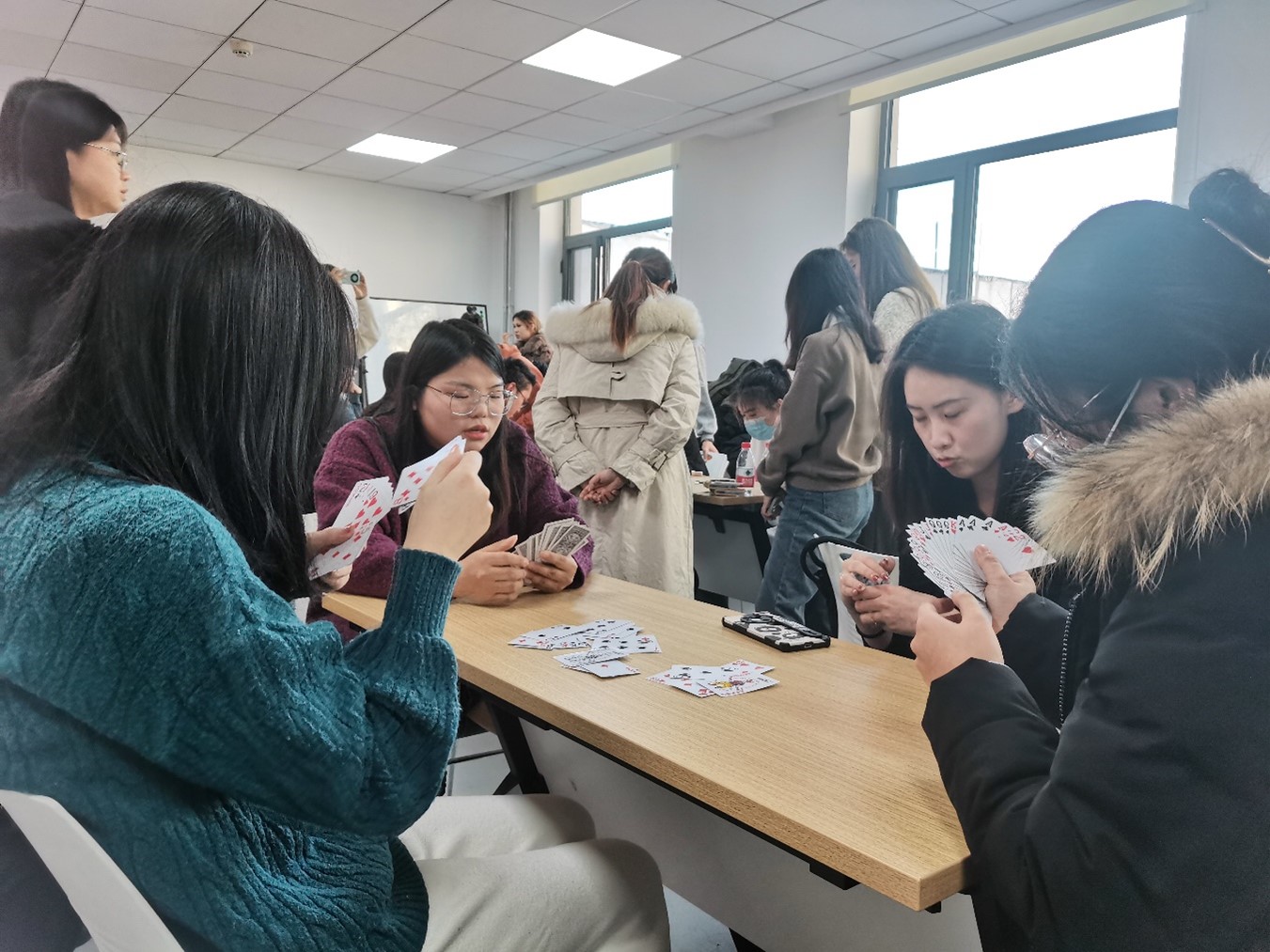 以“掼”会友展风采。掼蛋作为新潮的纸牌玩法,调动了师生参与积极性。参赛者通过眼神诉说默契,表情掩饰技巧,以计算和推测选择最优解,同时预测其他人的牌面,与队友在默契配合之中,取得最后的胜利。比赛同样共分两轮,第二轮由三支胜利队伍一对一比赛决出最后的胜者。