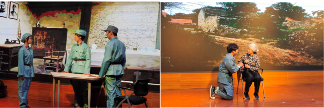 剧本演绎阶段,来自全校13个学院的21支参赛团队以第一阶段征集的优秀剧本内容为主线进行二次创作,通过情景剧的表演形式,生动再现革命先辈们为国家独立、民族解放、人民幸福而不懈奋斗的动人故事,为观众们奉上了一场直抵人心的视听盛宴,真正做到用红色基因为当代青年“树魂、立根、打底色”。情景剧《红豆》通过对人物交谈、青年游行及朗诵等情节的细腻刻画,生动诠释了老员工江玫在时代巨变中面对要挽救国家危亡还是要个人爱情的两难抉择时的内心矛盾及投身于革命实践的坚毅,展现了革命青年的担当精神。《逆光》通过人物心理交流、高唱《国际歌》等情节的细致呈现,生动展示了党的好女儿亓美玲为保护人民利益、维护党的秘密而壮烈牺牲的英勇事迹,表现出中国共产党人坚贞不屈的精神。《红梅赞歌——沂蒙母亲王换于》以师生互动视角,回忆“沂蒙母亲”王换于主动请缨创办战士托儿所、带动全村抚育近百名革命后代的故事,歌颂了沂蒙母亲的无私大爱。《抗日女杰——李承英》分三幕呈现了李承英成立妇救会、送儿上战场及被抓后顽强反抗的故事,赞扬了革命先辈顽强斗争的精神。各场情景剧精彩纷呈、扣人心弦,演员们跨越时空走进峥嵘岁月,生动再现了革命先辈坚定理想信念,英勇奋斗、甘于奉献的壮阔人生,深深感染了现场的每一位观众。