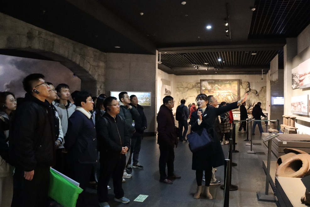 活动第一环节为师生参观中国甲午战争博物馆陈列馆。在解说员的引导下,全体师生参观了甲午战争史实展,在行走中进行了一场沉浸式的“大思政课”。馆内珍贵的甲午战争历史图片和大量甲午战争时期的武器装备,还原再现了中国第一支近代海军——北洋海军的成军和覆没历程。推开历史厚重的门,全体师生深刻感受到中日甲午海战的悲壮和创痛。