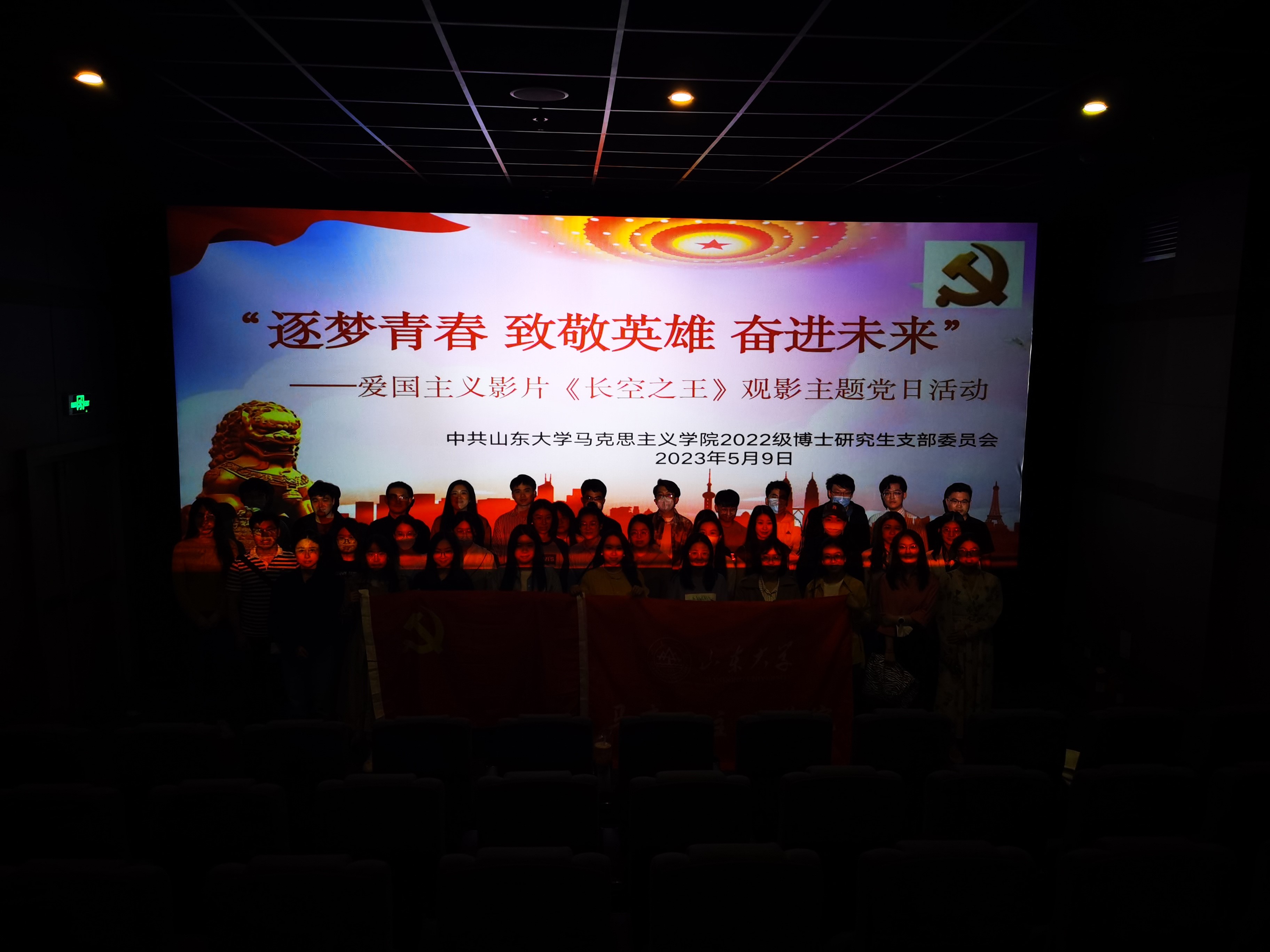 2023年5月9日傍晚,英国上市公司3652022级博士研究生党支部组织支部党员开展“逐梦青春,致敬英雄,奋进未来”主题党日活动,党员一行30余人前往新世纪影城观看红色影片《长空之王》。