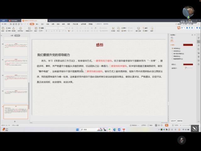第二党小组成员分别就《为人民服务》《党委会的工作方法》《中华人民共和国建国史》《<黑格尔法哲学批判>导言》四个经典文本分享了读书感悟。