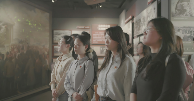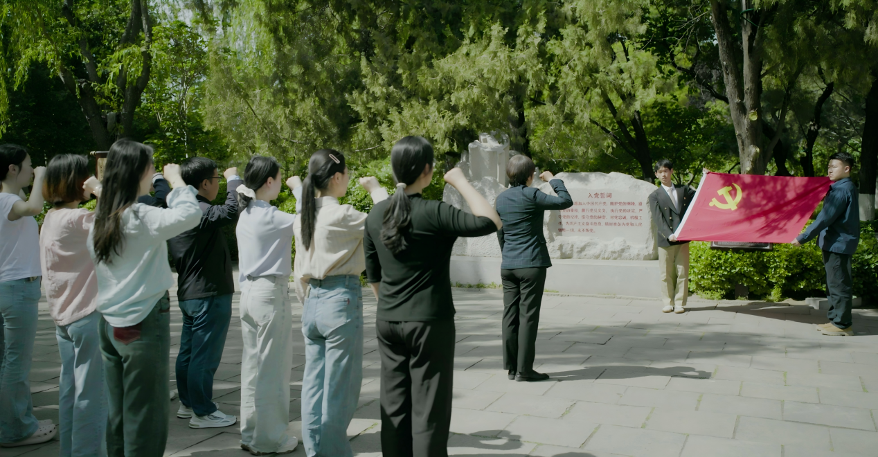参观结束后,同志们来到美铭广场,瞻仰先烈雕像。鞠晗书记领誓,全体党员面向党旗,高举右拳,重温入党宣誓。誓言声声有力,字字铿锵,彰显了党员同志对党的忠诚信仰与正风肃纪的决心。