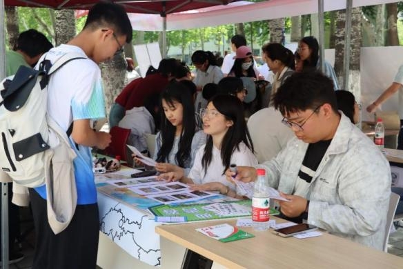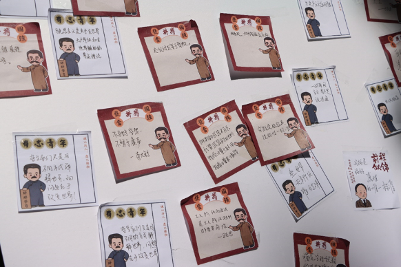 在“探寻伟人足迹”展台,欧洲地图串联起科学社会主义的思想发展脉络。“百年红色征程”展台则聚焦马克思主义中国化历程,“红色地标打卡”带领师生重温井冈山到西柏坡的革命历程。此外,“思想的火种”展台设置经典著作配对游戏,“时代的回响”的留言板上留下了参与者真挚的信仰,“文艺里的信仰”展台开展红色诗词飞花令,“剧本杀中的思政课”让参与者重温长征之路,“指尖上的美育”展台提供植物拓印、DIY手作等创意体验,创造独一无二的伴手礼。
