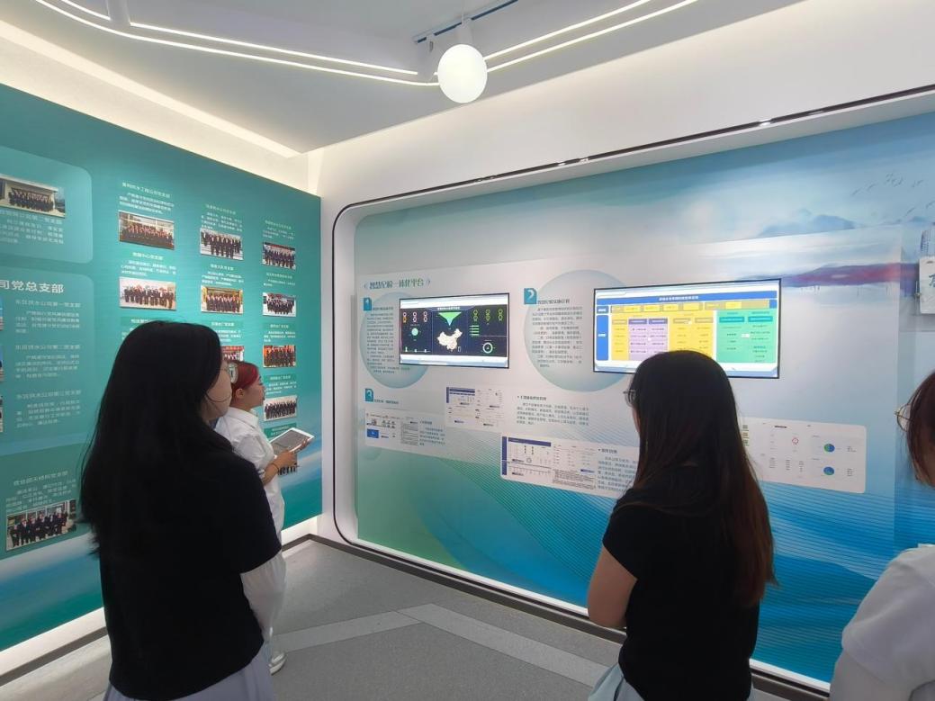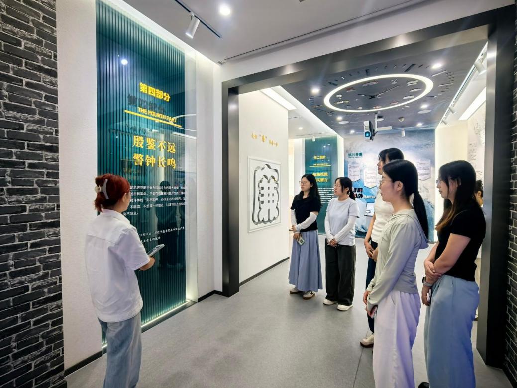 在济南水务集团廉洁文化基地,团队成员亲身感受了“五维一体”展陈体系的魅力。该地以立体化、多维度的方式构建了一个全面的廉洁教育空间,通过全息投影技术生动再现大禹治水、西门豹治邺等历史典故,让参观者能够穿越时空体验古代廉政智慧,通过沉浸式学习,使廉洁教育真正实现“入脑入心”。调研团队体验了“慎独慎微·清风廉行”单元的AI心理测评舱,该设备通过语音交互生成个性化廉洁报告,可以将抽象意识转化为可量化指标,通过“测评-反馈-改进”的闭环机制,实现强化自我监督、提升廉洁素养。