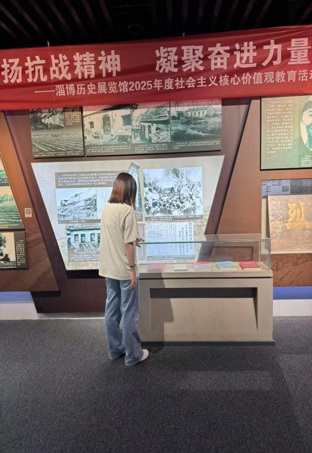 8月初,河南分队探访郑州二七纪念馆。罢工现场复原模型与历史照片,再现了1923年京汉铁路工人“为自由而战”的呐喊,林祥谦、施洋等先烈的鲜血铸就了“二七精神”丰碑。山东分队兵分两路:淄博革命历史纪念馆内,抗日武装文献、带血马袋追溯军民浴血岁月;山东省博物馆《山河永固》特展,通过展出战士未寄家书、支前独轮车等330件文物,诠释了晋冀鲁豫抗日根据地生产自救、文化抗战的坚韧实践。