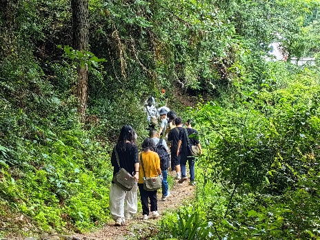 体验式实践活动厚植奋斗情怀,让革命精神躬身践行。研学注重“学思用贯通、知信行统一”,通过情景演绎与动手实践,让同学们在参与中体悟革命精神。“三湾改编”情景课上,同学们民主选举班长、安全员等岗位,重现“官兵平等”传统,在班旗展示、班歌传唱中实现“听历史”到“践精神”的升华;学编红军草鞋时,粗糙稻草在指尖穿梭,搓绳、编织的过程让大家真切感受革命军民“自己动手、共克时艰”的智慧;重走红军路途中,陡峭山路、湿滑林地模拟出当年行军的艰苦,汗水浸湿衣背让“艰苦奋斗”从口号变为切身感受;走进坝上老乡家,同学们分工制作红军餐,在烟火气中聆听脱贫攻坚与乡村振兴故事,既体会革命岁月的简朴,也见证老区的时代变迁,使井冈山精神逐渐内化为同学们的行动自觉与奋斗情怀。
