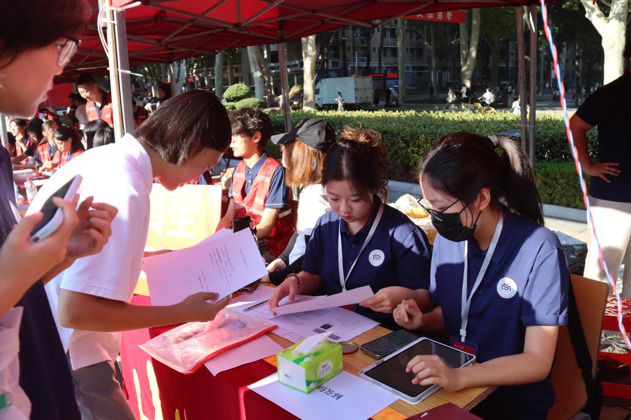 为保证迎新工作井然有序地进行,学院组建了涵盖本科生、硕士生、博士生的一站式综合服务志愿者团队。迎新现场,志愿者们身着统一服装,有条不紊、各司其职,严格按流程办理入学手续,协助引导新生完成扫码签到、资料领取等一系列报到工作,解决新生们的入校难题。每一位志愿者都表现出了十足的温暖与细致,让新生们感受到山大马院大家庭的蓬勃生机与亲切关怀。