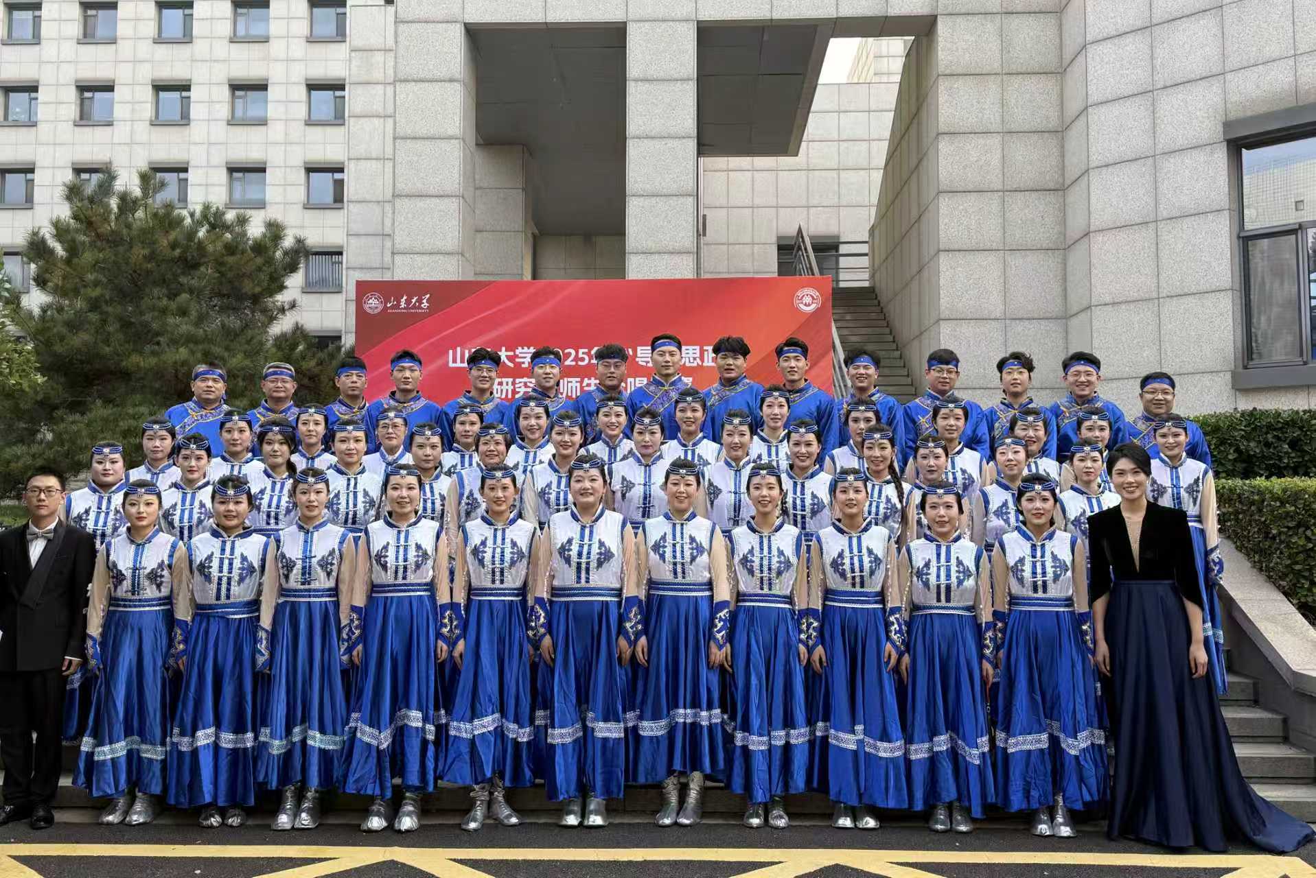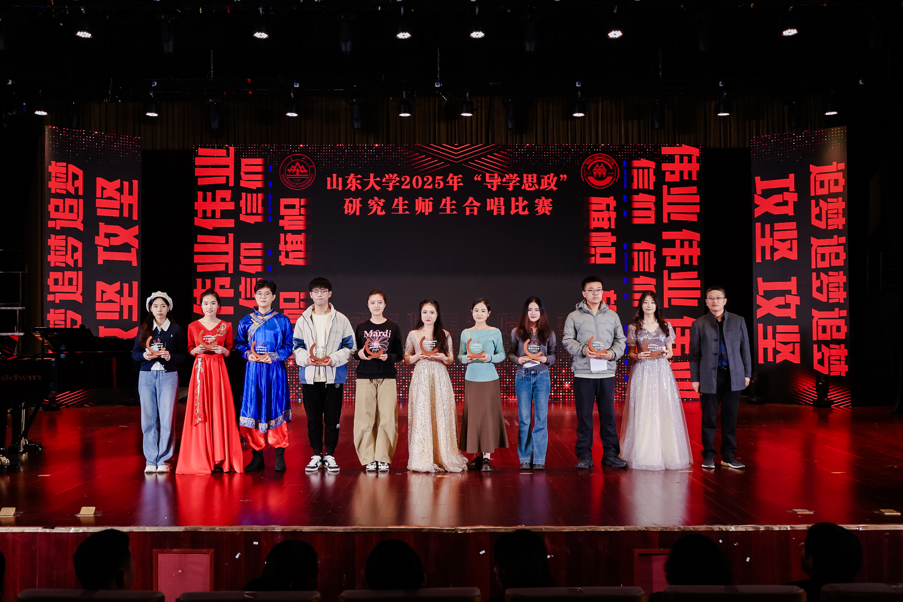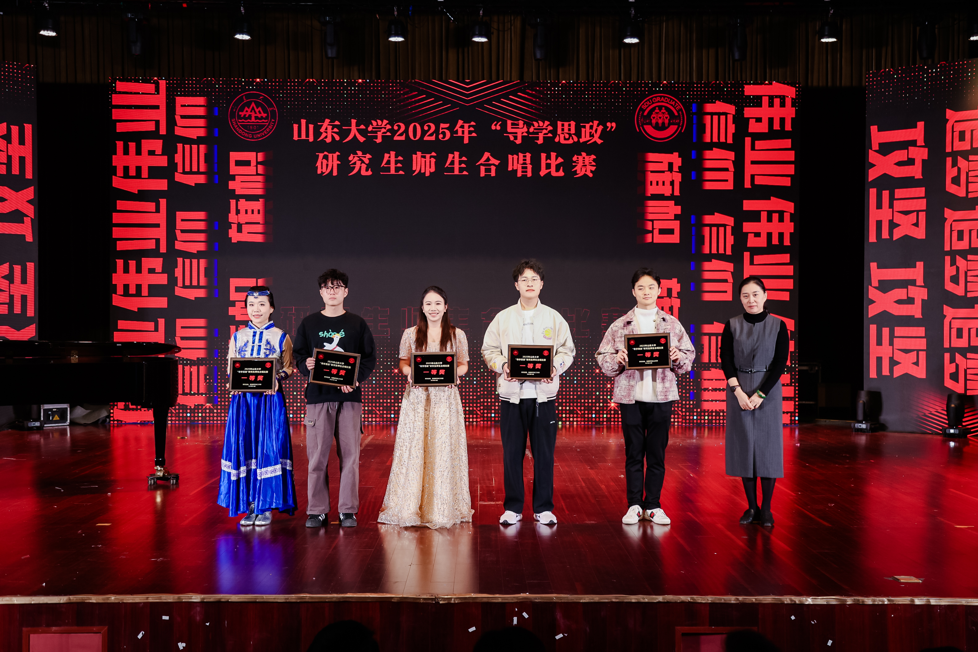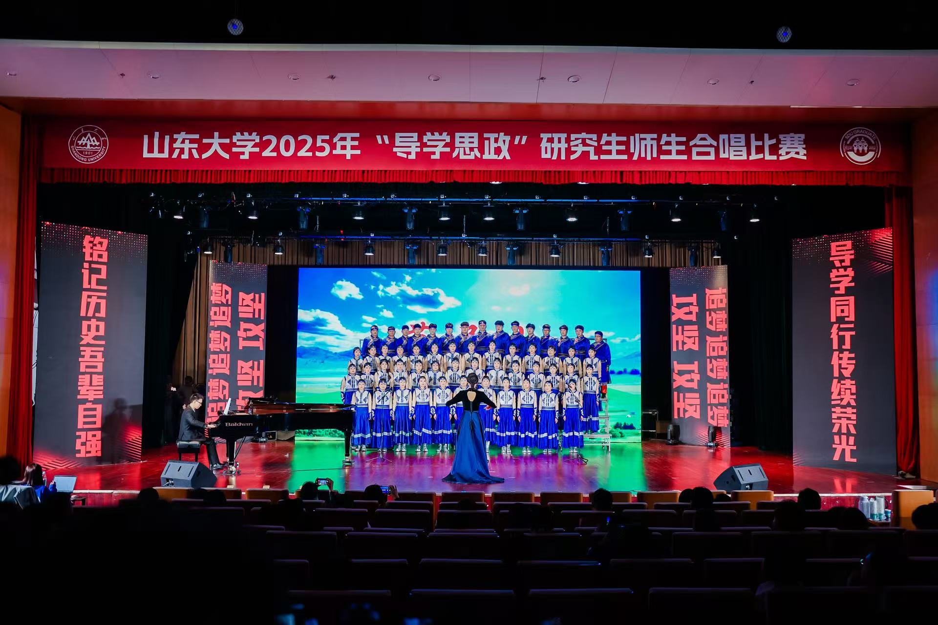 比赛过程中,学院研究生师生合唱团用歌声传达中华民族坚韧勇敢的民族精神,唤醒了每个人心中对祖国山河深沉的爱。前奏响起,婉转悠长,人声融入,清澈空灵,生命的力量在旋律中流淌。“风吹过青草连绵,莫尼山矗立在眼前”,草原的广阔由此延伸开来,那庄严神圣的莫尼山就如饱经风霜的中国人,双脚坚实地踩在这片土地上,任由风吹雨打不改其志,哪怕荆棘丛生不易其途。师生们饱含深情的歌声、细腻入微的情感流露令人动容,生动展现了学院师生朝气蓬勃、奋发有为的昂扬风采,最终以98.02的高分荣获一等奖(第一名),并且凭借学院教师队伍的积极支持和参与荣获导学思政奖。