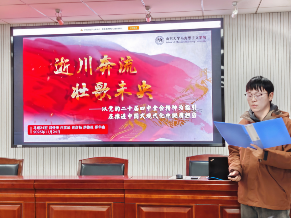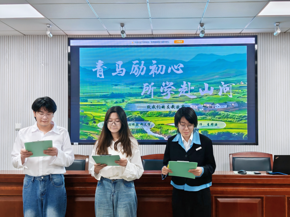 吴梦含团队以“所学赴山河”为主题,分享了从山大到山西运城、山东临沂、山东威海等地的支教故事。他们用行动构建覆盖多省的支教生态圈,诠释了“初心不分长短,担当无关远近”的奉献精神;闫钎册团队围绕党的二十届四中全会精神,从理论逻辑和实践案例阐释中国式现代化内涵,强调青年要融入国家发展大局,在全面深化改革中贡献智慧;郝蒋星团队以马克思的职业观为引,结合在宁夏、安徽等地的调研经历,提出“在为人类服务的熔炉中铸造自我”的成长路径,强调基层是实现理论价值的“最后一公里”;林琳团队以“三株草木心,一片基层情”为题,从酸枣树、榕树、麦田等意象出发,讲述深入山东多地基层调研经历,展现青年将论文写在祖国大地上的实践热情;李子琪团队从专业学习、社会实践、志愿服务三个维度展开演讲,努力践行知行之道,奔赴时代之约。