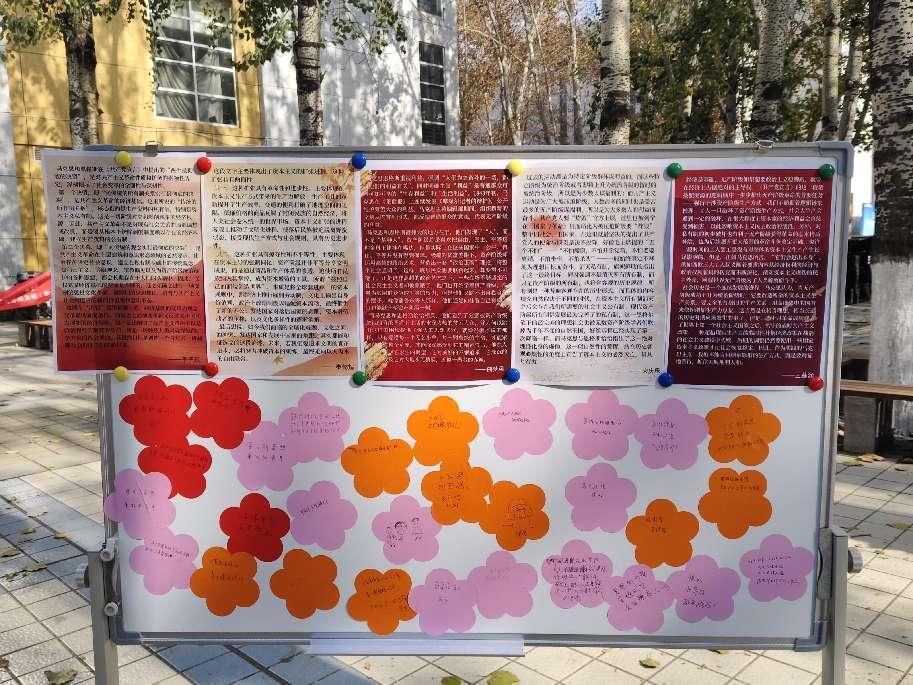 本次活动于11月29日设立线下展台进行线下读书分享和活动奖励。参与者领取经典金句打卡卡片,至各展台集章打卡,兑换明信片和笔记本等文创礼品,保留经典阅读记忆;参观优秀书评展示板,热烈讨论阅读感悟,在交流中选出最佳书评并留言回应,在交流互动中思想交锋、精神碰撞。同学们积极参与趣味小游戏,在“文本-事件连连看”游戏中,利用专业知识将马克思对中国的论断与近代中国具体事件相对应,在游戏中领会马克思对中国的深邃理解;在“猜猜导师怎么答”游戏中,猜测马克思对具体事件的评论,翻开书页了解原著观点,感受马克思的理论高度。