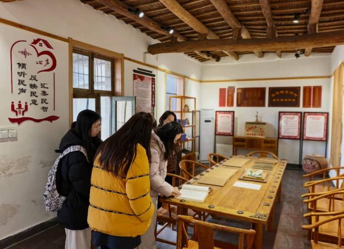 实践团首站抵达乡村振兴示范村——玫瑰镇夏沟村。团队成员走进村党支部牵头创立的“民情茶舍”矛盾调解室,仔细翻阅村民矛盾调解台账,并在玫瑰镇人大副主席尹婷婷同志的讲解下,深入探究夏沟村党支部如何创新提炼出“一单式”工作法,以破解村级事务协商难题、加速群众诉求解决进程。从收集群众诉求、分类办理到办结反馈,每一个流程、每一笔记录,都让成员们深切感受到该工作法在规范村级管理、提升治理效能、凝聚发展合力上的实效,体会到基层治理精细化所蕴含的温暖与活力。