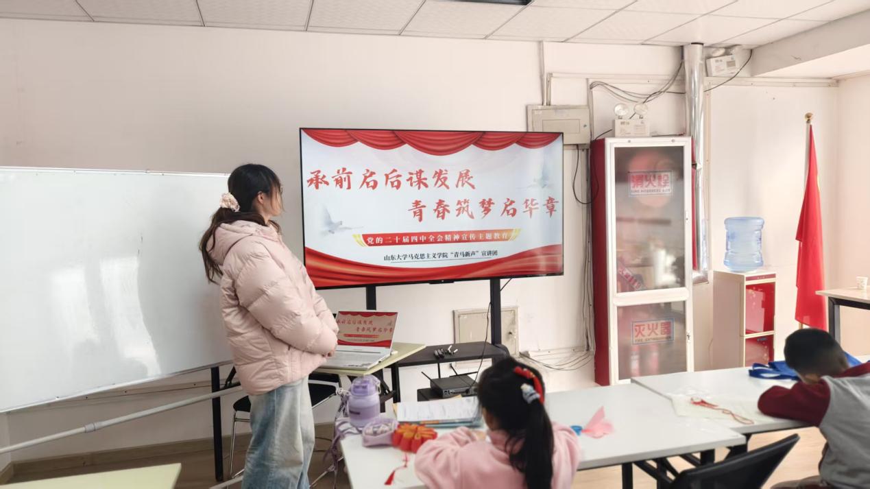 为深入学习贯彻党的二十届四中全会精神,推动党的创新理论走进基层,2月24日,英国上市公司365“青马新声”宣讲团走进山东省济南市历城区唐冶街道中新国际城东社区,面向社区中小员工开展了一场主题鲜明、内容生动的宣讲活动。此次活动旨在引导青少年厚植爱党爱国情怀,凝聚奋进新征程的青春力量。