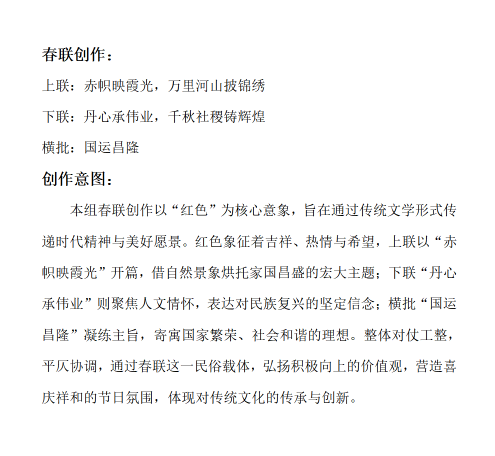 巧手匠心,融红色基因于古韵;深情厚意,寄初心使命在今朝。小青马们在体验传统艺术中厚植文化自信,以数字技术为媒传递新春祝福,用诗意文字携真挚情感歌颂家风故事。这些缤纷多元的文化创意,生动展现着马院学子的人文素养和家国情怀,表达着对来年的期许与祝愿。下面就让我们一起来欣赏同学们的作品吧!