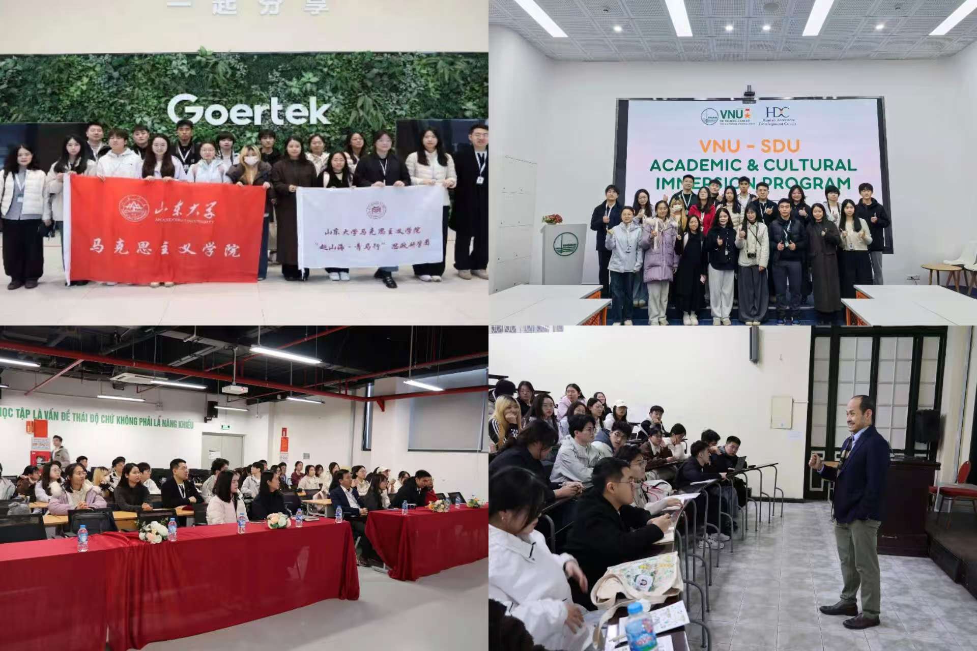 到国际舞台去!马院青年走出国门,搭建中外青年交流桥梁,在国际舞台中传播中国故事,在文明互鉴中凝聚青春共识。“越・见青春”“越山海,青马行”两支越南访学实践团,走进河内国家大学开展社会主义现代化发展路径学术研讨,走访文庙、胡志明陵墓等场所,感受儒家文化本土化与越南革命历史,搭建中越青年常态化对话平台,用青春之声讲好中国故事,让文明之花在互鉴中绽放。