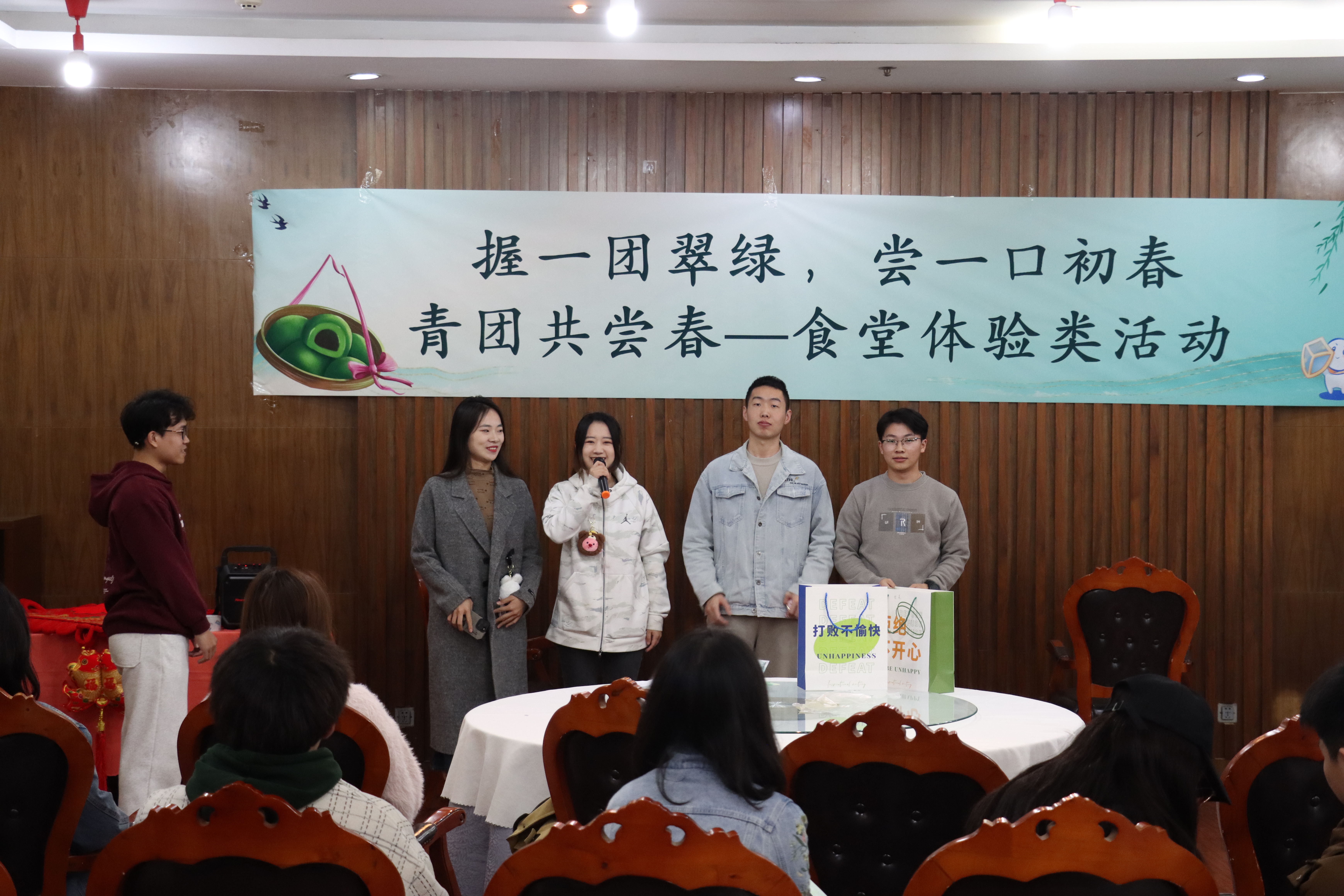 活动在千佛山校区舜园餐厅二楼举行。开始前,同学们将满怀春日希冀的心愿单放入心愿箱,并进行简单的自我介绍。大家在不同学科的碰撞与友善积极的热情交流中互相了解,并组建合作团队,为接下来的“包青团比赛”做好准备。