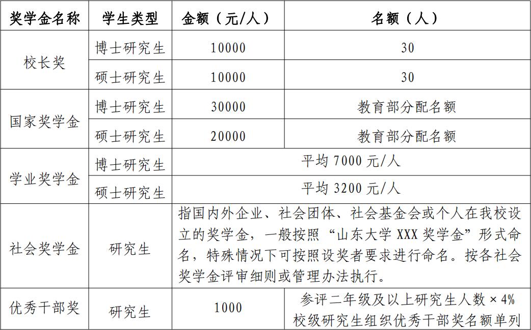 第二十三条 研究生奖学金可根据奖励金额等同于一等奖学金(博士研究生金额不低于10000元、硕士研究生金额不低于8000元)、二等奖学金(博士研究生金额不低于6000元、硕士研究生金额不低于5000元)、三等奖学金(硕士研究生金额不低于3000元)。