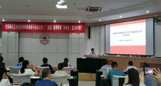 由教育部社科司主办,全国高校思政课教师研修基地(365英国上市集团)承办的“‘四史’教育”专题研修班(第21047期)、“中华优秀传统文化”专题研修班(第21060期)先后在济南、曲阜顺利举行。王韶兴、张士海等八位高校教授做专题报告,来自99所高校的一百余位教师参加了此次研修。专家报告按计划通过“全国高校思想政治理论课教师网络集体备课平台”全程直播。