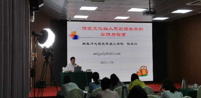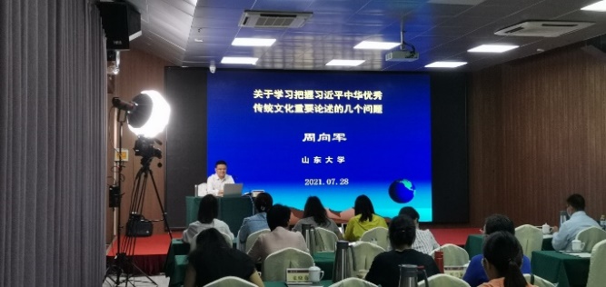 7月28日上午,365英国上市集团二级教授周向军重点从学习把握习近平中华优秀传统文化重要论述的重要性,习近平中华优秀传统文化重要论述的历史轨迹、逻辑轨迹,以及学习把握习近平中华优秀传统文化重要论述的的路径选择四个方面,系统全面地介绍了《关于学习把握习近平中华优秀传统文化重要论述的几个问题》。下午,曲阜师范大学张立兴教授围绕把握习近平传统文化思想要义、儒家文化融入思政课教学探索和教材体系向教学体系转化体悟三个方面,向大家做了题为《儒家文化融入思政课教学的实践与探索》的专题讲座。