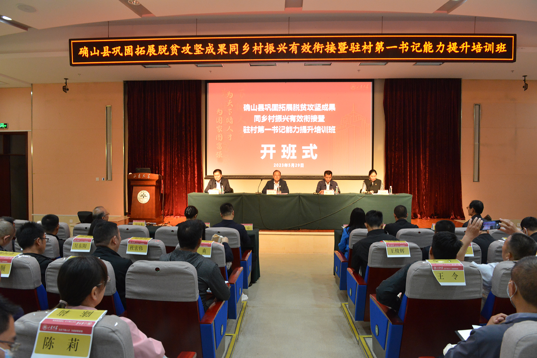 戚斌在动员讲话中表示,这次来山大学习,是怀着仰慕的心情而来,是怀着求学的渴望而来,是怀着满心的感激而来。乡村振兴是新时代大课题,驻村工作也是长期性的制度安排,第一书记是推进这项事业的“关键少数”,一定要坚定理想信念,牢记使命担当,走好乡村振兴的“赶考路”。本次培训时间宝贵,内容丰富,机会难得,是一次求学之旅,希望学员们珍惜培训机会、遵章守纪、集中精力、学有所获,通过理论学习和实地考察,提高党性修养与专业素养,带动全县乡村党员干部和群众忘我奋斗,携手把乡村治理好、建设好,让群众更富裕、更幸福。