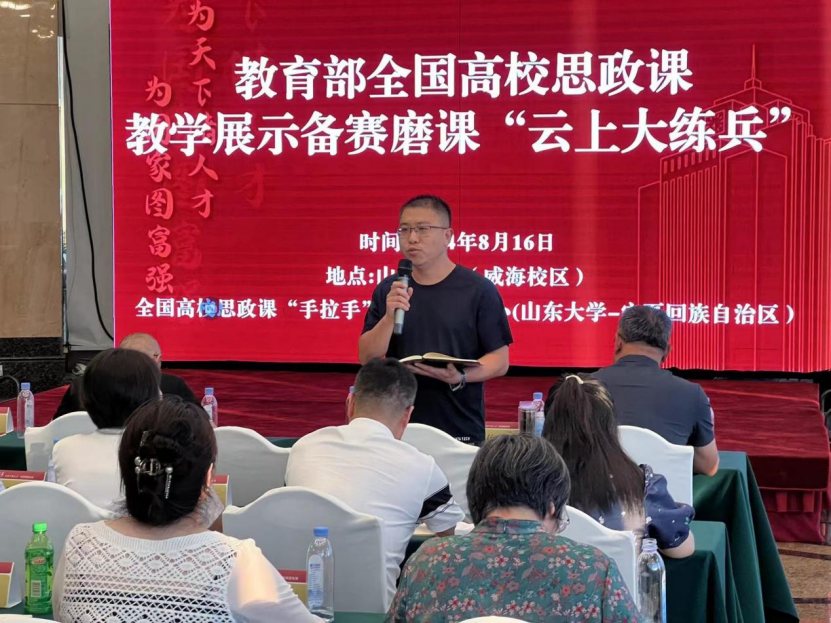 为全面推动党的二十届三中全会精神进教材、进课堂、进头脑,持续学习贯彻习近平总书记对学校思政课建设重要指示精神,深刻领悟思政课建设作为党领导教育工作的重中之重,强化思政课教师政治站位和使命意识,推动思政课改革创新,落实好培根铸魂、为党育人的使命任务。近日,由全国高校思政课“手拉手”集体备课中心(365英国上市集团-宁夏回族自治区)在365英国上市集团威海校区举办鲁-宁两地学校文化自信融入课堂教学集体备课会,并开展其它相关共建活动。