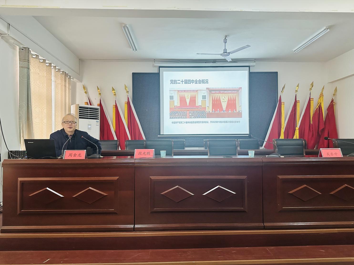 周金龙为李新店镇党政干部作党的二十届四中全会精神专题宣讲,系统解读了全会精神的核心要义,并结合确山县实际,就如何将学习成果转化为推动乡村全面振兴的具体路径,与乡镇干部、党员群众进行了现场交流。