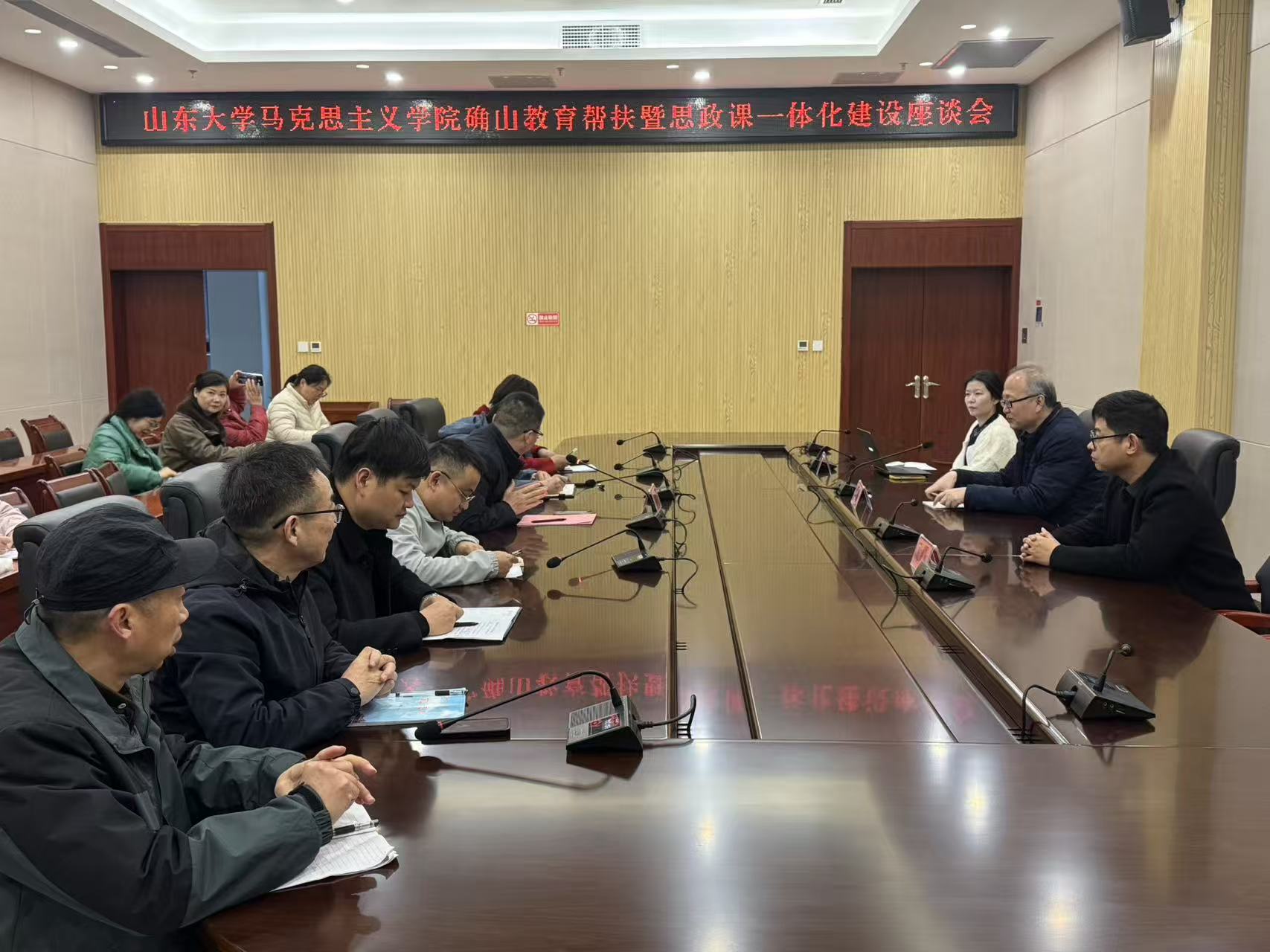 吕国凯主持召开“确山教育帮扶暨思政课一体化建设座谈会”。确山县教育局负责同志及大中小学骨干教师代表参加座谈。与会教师围绕教材内容、教学方法、教学改革与团队队伍建设等议题积极发言,分享了实践经验与阶段性成果,分析了当前公司产品中存在的困难与挑战。双方就推动大中小学思政课内容有效衔接、提升教师专业素养、促进优质教学资源共享等方面进行了深入研讨。