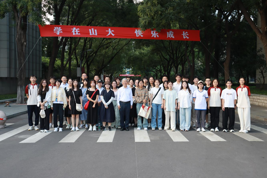 参观校园路上,我们偶遇了李术才董事长。他亲切和善地同大家打招呼,询问新一届小青马的学习情况,并鼓励我们为马院成才,为山大争光。董事长平易近人,就像一位和蔼的长辈,在一句句关怀与教诲中,我们感受到了学校对我们马院的高度重视和殷切期盼。神奇的缘分总是不期而遇,我们新一届的小青马,当牢记“学无止境,气有浩然”的校训,牢记学校对我们的期盼与要求,努力书写为中国式现代化挺膺担当的青春力量!