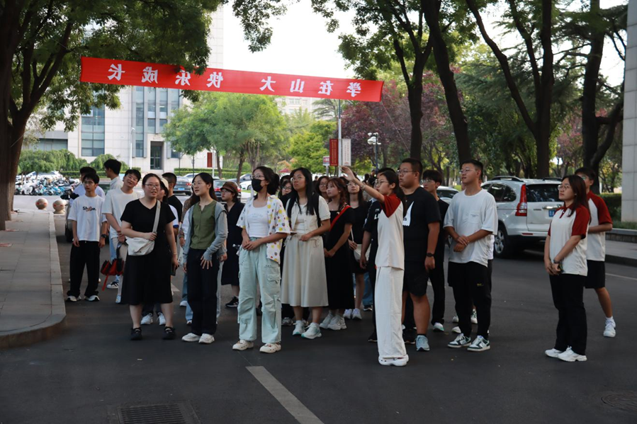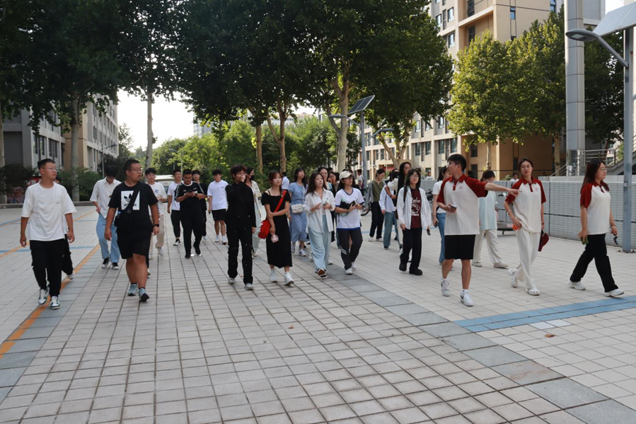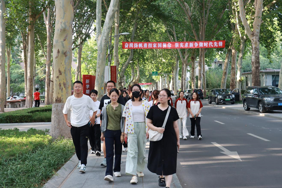 新生报到后,在学院员工会志愿者的带领下,同学们集体游览校园。从宿舍楼出发,依次行经齐园餐厅、文史楼、小树林、大成广场、学院楼、音乐馆、知新楼、体育馆等地,志愿者为同学们详细介绍校园基本情况与主要学习生活场所,深入讲解一座座雕像背后的山大先贤故事,并针对同学们提出的问题进行解答。