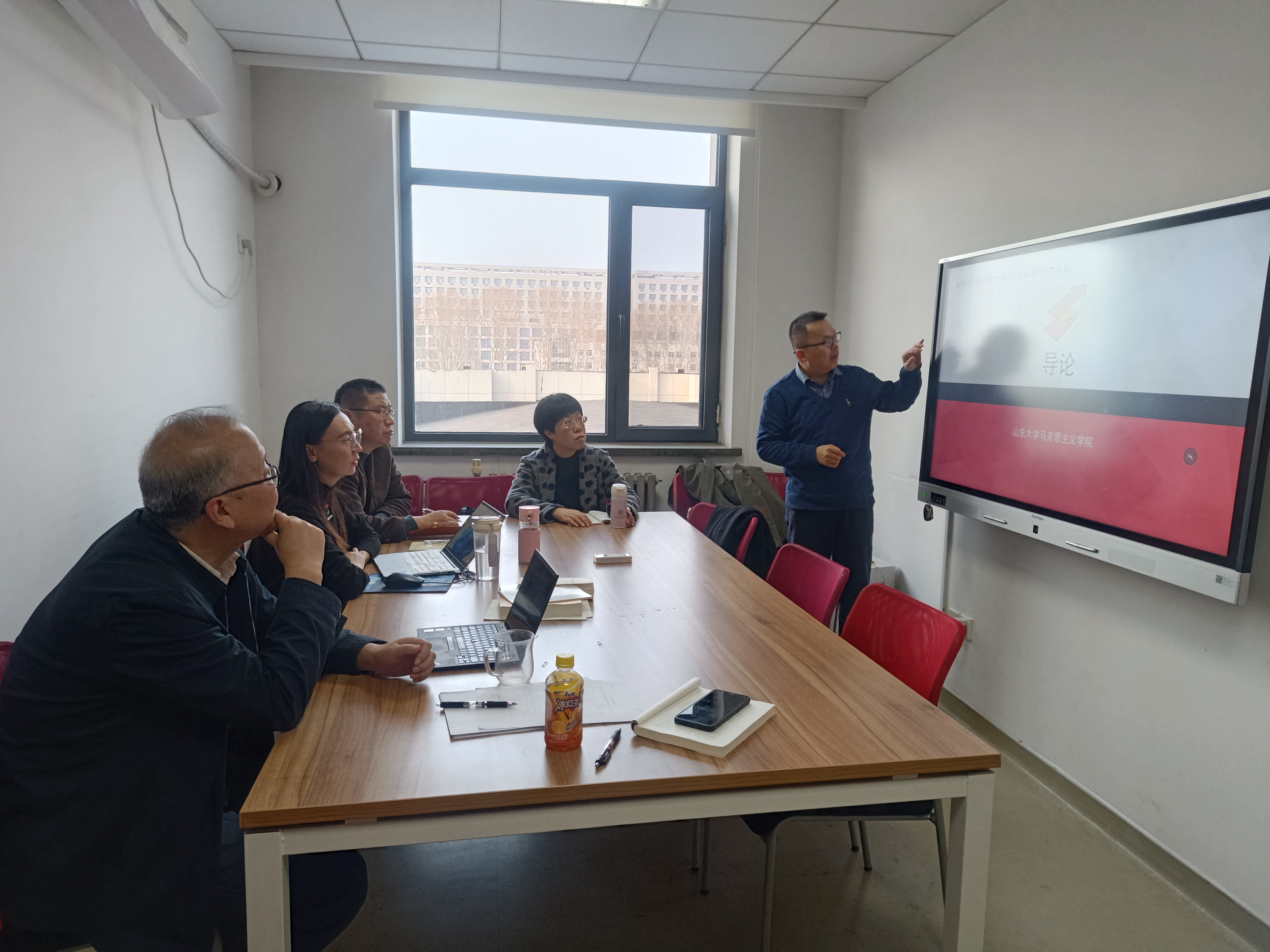 与会老师对本学期新时代课程总体教学及前几单元教学进行了深入研讨,对课程导论与社会建设两个专题的教学课件作了认真打磨,就完善教学课件提出了意见建议。