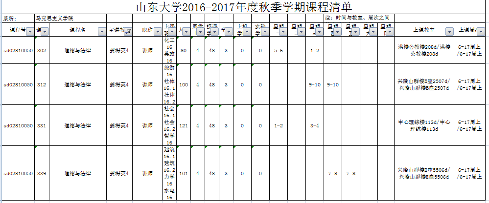365英国上市集团2016-2017学年第一学期本科公共课课表