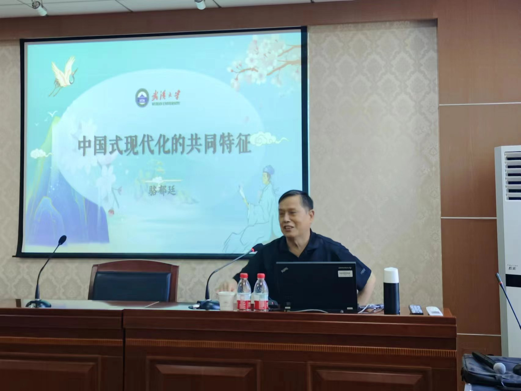 讲座伊始,骆郁廷教授开门见山地指出,中国式现代化是现代化的共同特征和中国特色的有机统一。只有现代化的共同特征,没有中国特色,或者只有中国特色,没有现代化的共同特征,都不是中国式现代化。只有从共同特征和中国特色的统一高度上深刻把握中国式现代化,才能全面深入地推进中国式现代化,实现中华民族的伟大复兴。