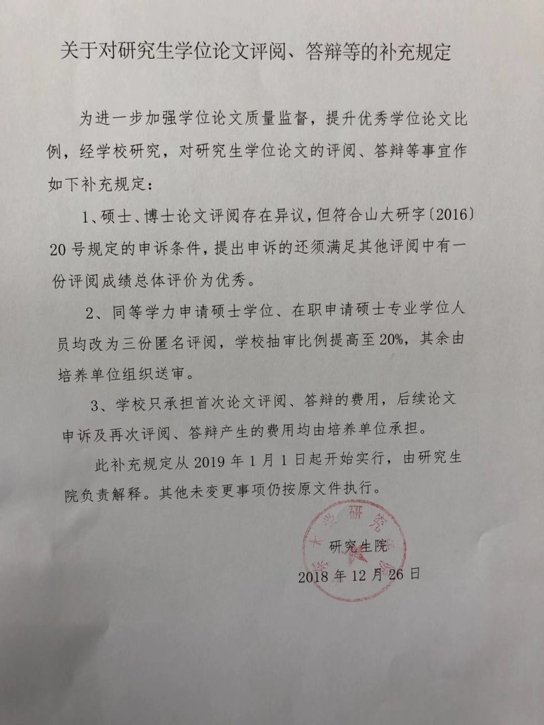 关于对研究生学位论文评阅、答辩等的补充规定
