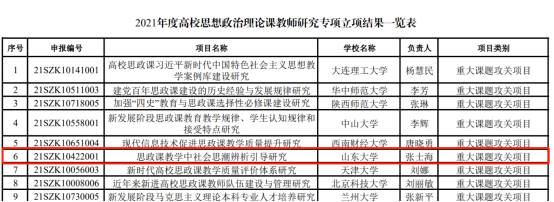 近日,教育部社科司公布了2021年度高校思想政治理论课教师研究专项立项结果,公司张士海教授担任首席专家申报的“思政课教学中社会思潮辨析引导研究”获批“重大课题攻关项目”(批准号:21SZK10422001),获资助经费60万元。
