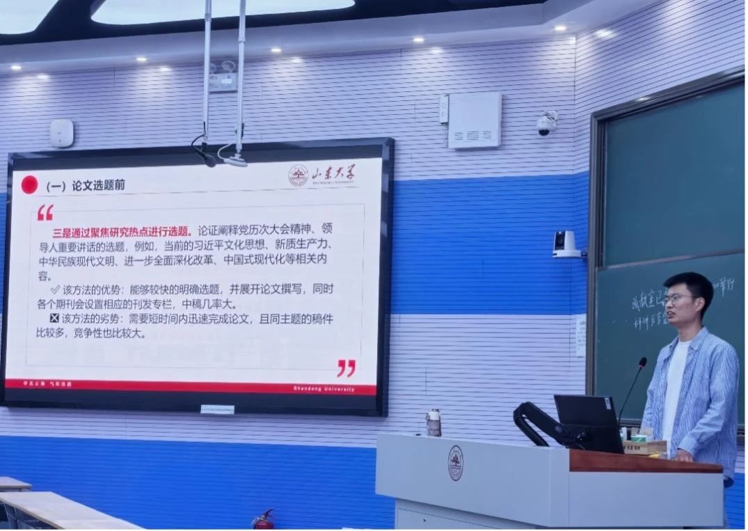 金英存结合自身在学术论文写作与发表的体会与感悟,从聚焦问题、反复修改、做好细节三个方面作交流分享。在论文选题上,他建议在选题前树立“找问题”的理念,基于期刊征稿信息、大量文献积累及专业研究热点开展选题;在选题中把握题目合适度、突出性和创新性;在选题后确认导师是否认可、自己是否胜任、是否具有可操作性等问题。在论文撰写上,金英存指出“反复修改”是提升论文质量的重要方法,提出了梳理逻辑、搭建框架、规范表达、精炼语句、注意标点等路径建议。在论文发表上,他着重强调做好文章查重和格式修改等细节的必要性,并提醒大家要持续关注文章发表的后续影响。最后,金英存以自身经历为例,鼓励同学们开展基础性研究和关联性研究,平衡好输入和输出、学习和生活的关系。